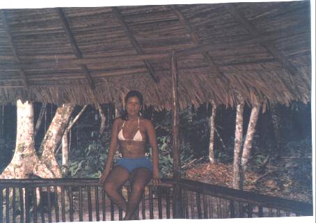 cabana. Fazendo exame pouco de uma ruptura em uma cabana da selva. Olhares que relaxam, No.?