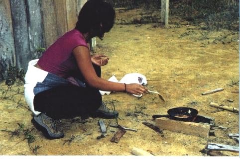 cooking. Preparando uma outra refeição, ao acampar e hiking. Prova sempre melhor nas madeiras!