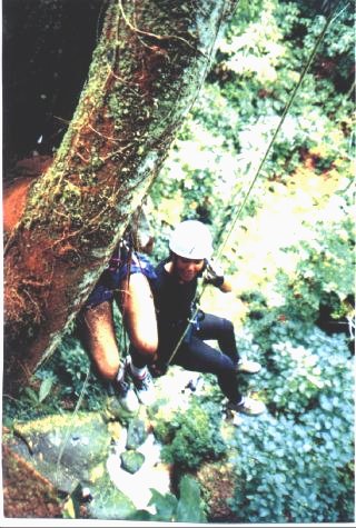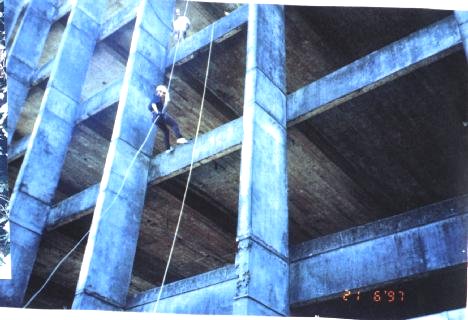 prática do rappel.. Esta é a parede que nós nos usamos praticar rappelling antes que nós a façamos para real na natureza.